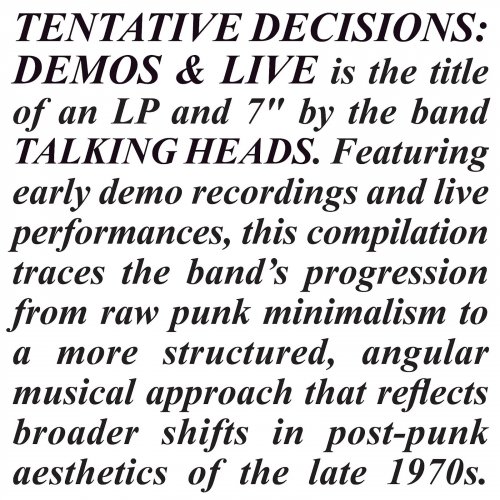 Talking Heads - Tentative Decisions: Demos & Live (2025) {Record Store Day Vinyl}