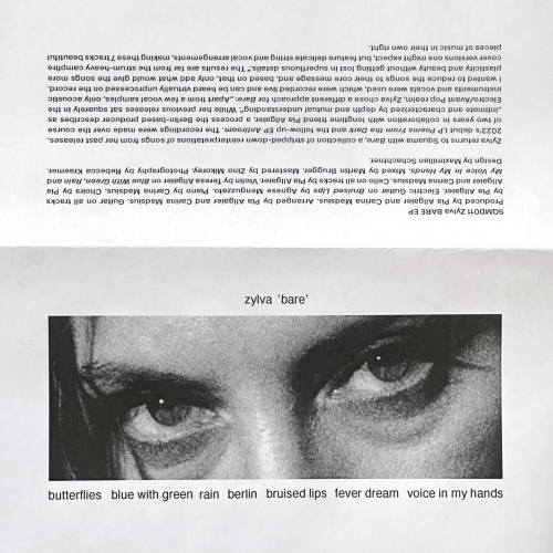 Berlin-based producer Zylva has released "Bare" via the Squama label, featuring acoustic reinterpretations of tracks from her previous records, "Poems From the Dark" and "Antiroom." Developed over two years in collaboration with Pia Allgaier, the project emphasizes an intimate and organic creative process. Shifting away from her established electronic and avant-pop style, Zylva utilized live-recorded acoustic instruments and vocals with minimal processing. The seven tracks avoid conventional arrangements in favor of delicate string and vocal layers, aiming to highlight the core essence and aesthetic purity of the original compositions.Title: Bare (Bare Version)