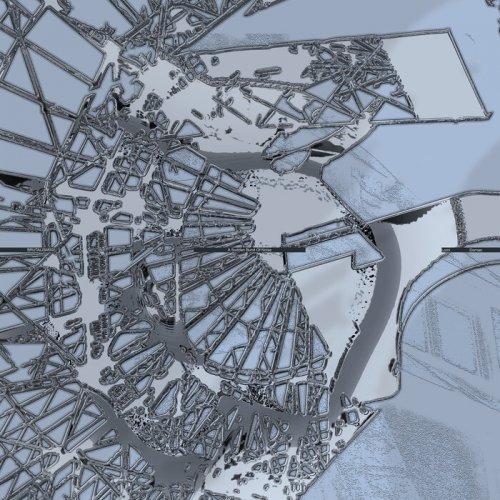 The result is not a documentary representation of the site but a sonic architecture derived from it. Each track reflects a structural component: axis, mirror, descent, radiation. The record unfolds as a sequence of material states – from reduction and
